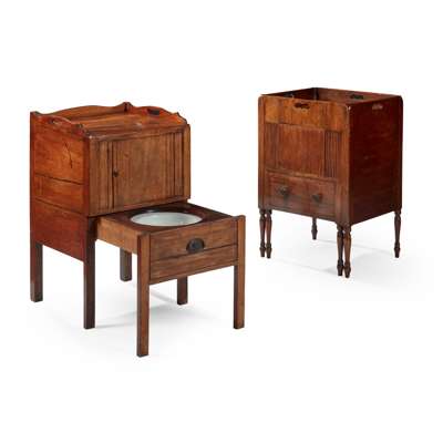 TWO LATE GEORGE III MAHOGANY TRAY-TOP BEDSIDE COMMODES