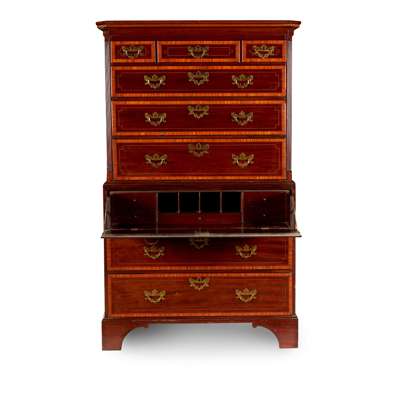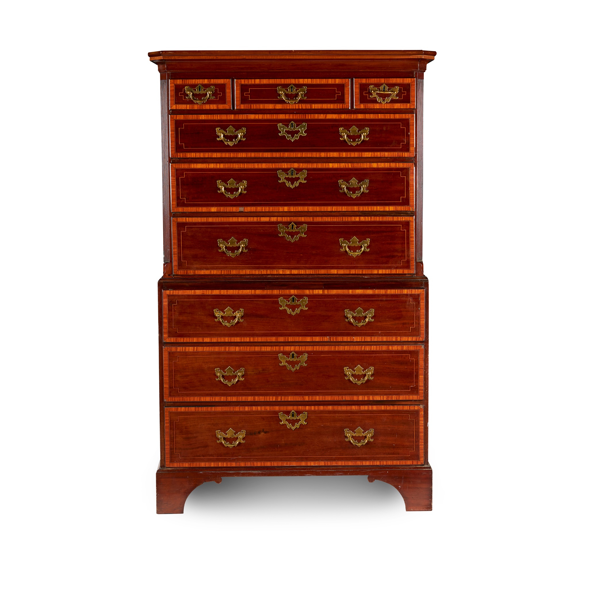 LATE GEORGE III MAHOGANY AND SATINWOOD CROSSBANDED CHEST-ON-CHEST