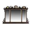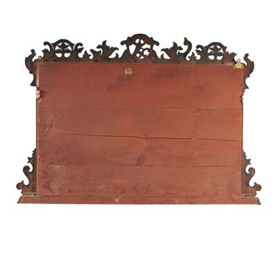 with three bevelled mirror plates in gilt moulded slips and a pierced fretwork frame with palmettes and ho-ho bird cresting