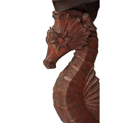 in the form of a shell supported on four seahorses