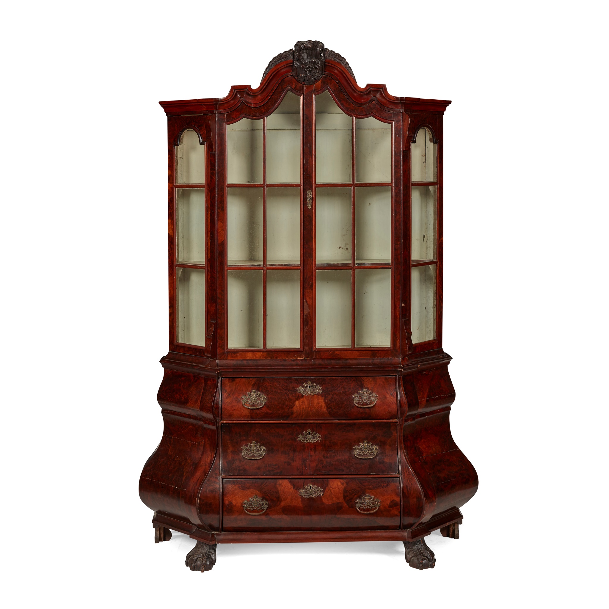 DUTCH WALNUT BOMBÉ DISPLAY CABINET-ON-CHEST