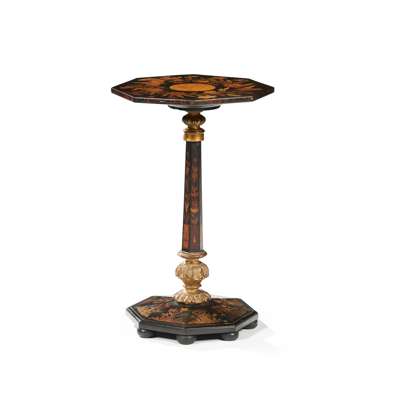 DUTCH MARQUETRY, EBONY, EBONISED AND PARCEL GILT OCCASIONAL TABLE, IN THE MANNER OF JAN VAN MEEKEREN
