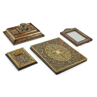 FRENCH FOUR-PIECE BOULLE MARQUETRY DESK SET Y