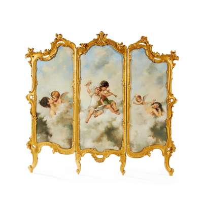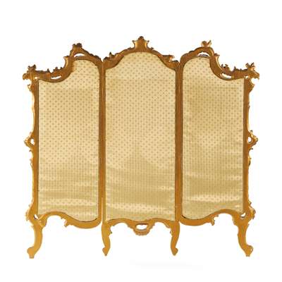 CONTINENTAL GILTWOOD AND PAINTED THREE PANEL SCREEN