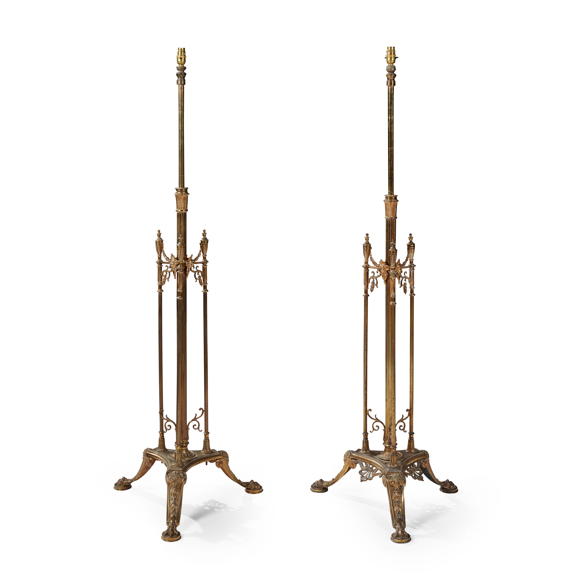 PAIR OF TELESCOPIC BRASS STANDARD LAMPS