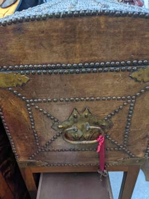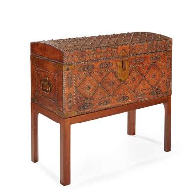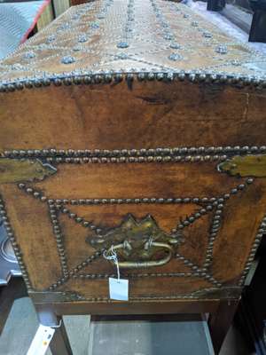 STUDDED DOME-TOP LEATHER CHEST-ON-STAND