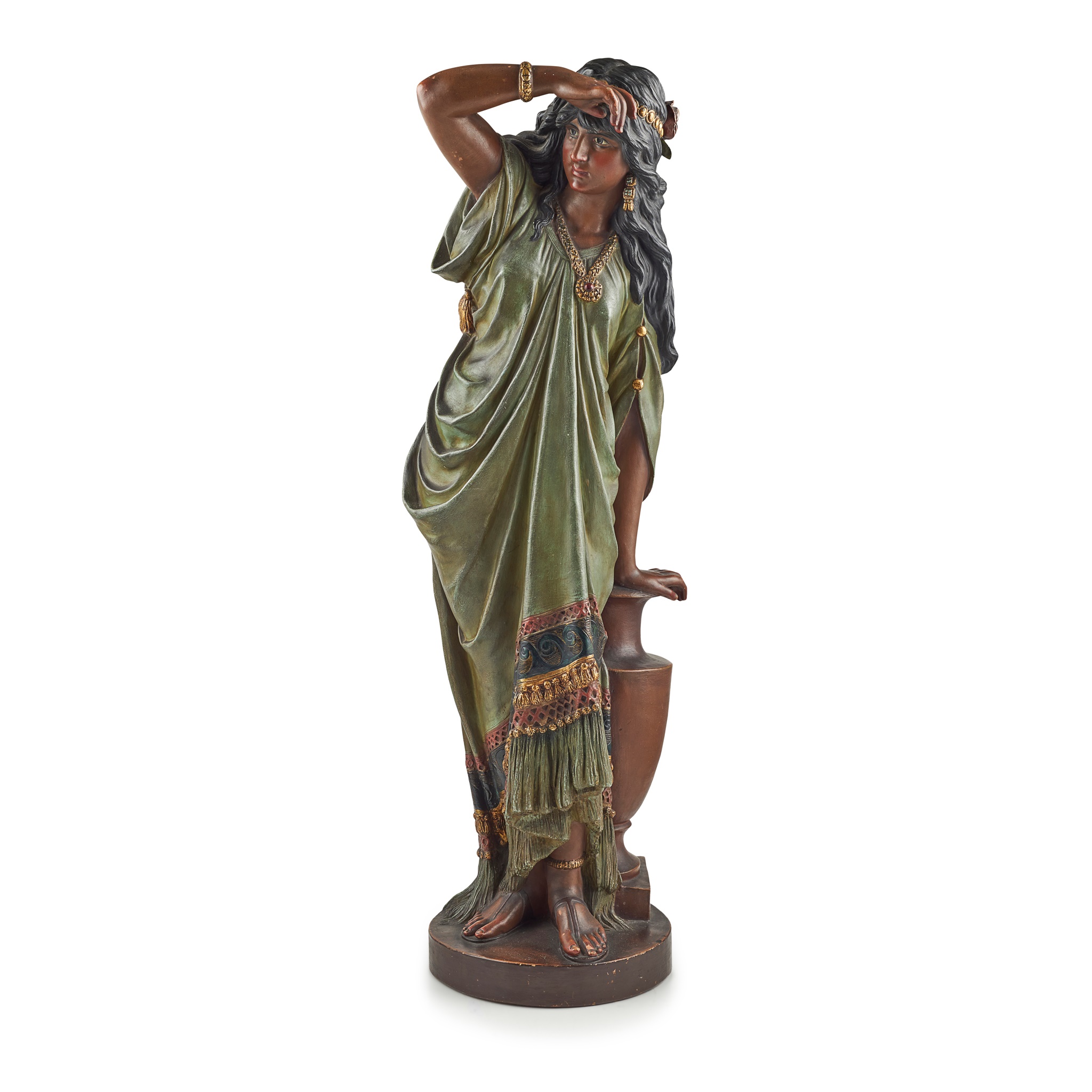OSCAR GLADENBECK, POLYCHROME-TINTED TERRACOTTA FIGURE OF A WATER BEARER