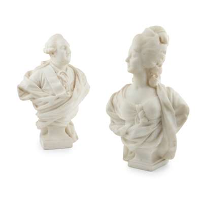 PAIR OF COMPOSITION MARBLE BUSTS OF LOUIS XVI AND MARIE ANTOINETTE