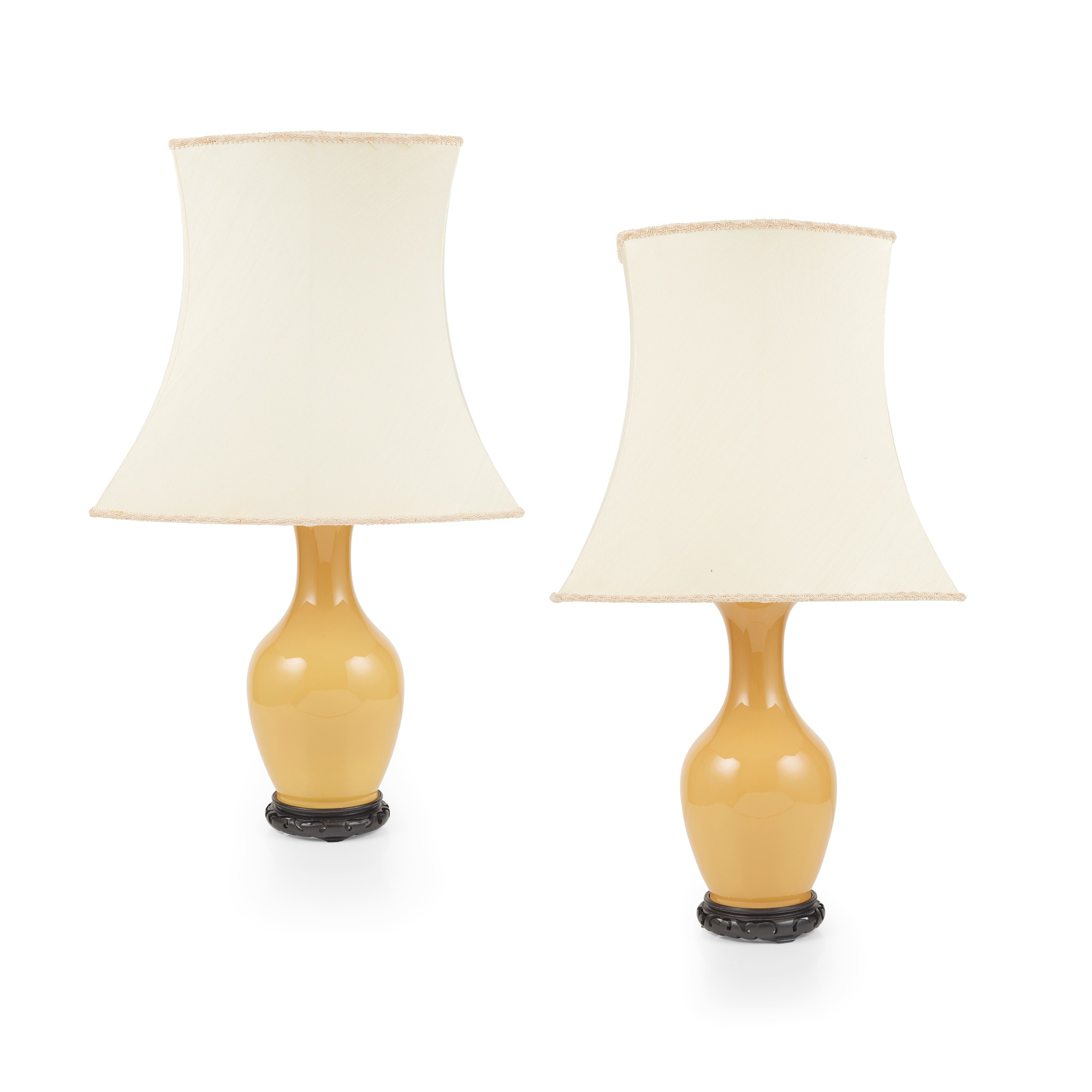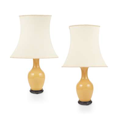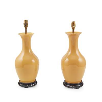 PAIR OF CHINESE YELLOW-GLAZED PORCELAIN VASES