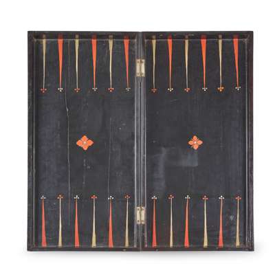 CHINESE CANTON LACQUER GAMES BOARD AND BONE CHESS SET