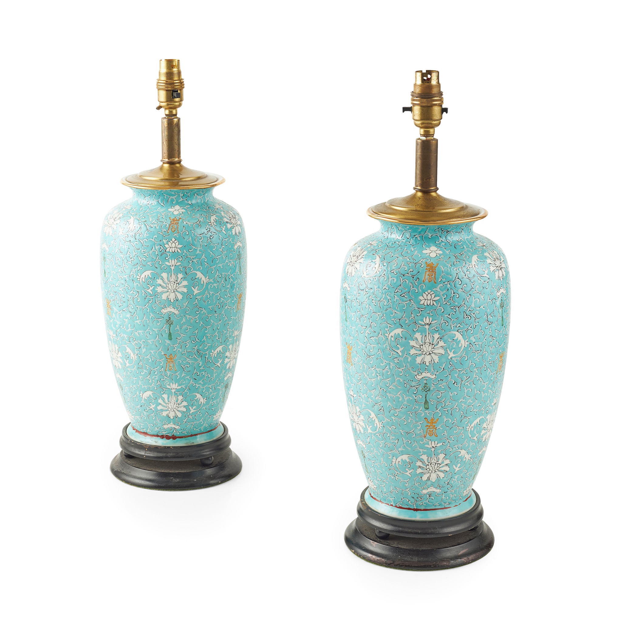 converted to lamps, decorated with white lotus blossoms and leaf scrolls