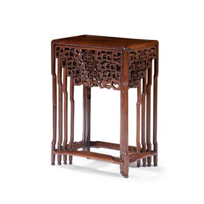 SET OF CHINESE HARDWOOD NESTING TABLES