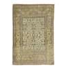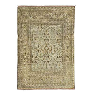 the creamy brown field with lozenge medallion, within light brown palmette and vine border