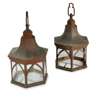 PAIR OF HEXAGONAL PATINATED METAL LANTERNS