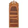 with a swan neck pediment and central foliate finial above arched and divided bevelled mirror plates