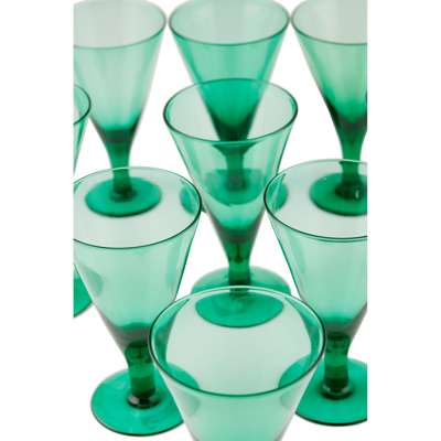 SET OF ELEVEN LATE GEORGIAN GREEN WINE GLASSES