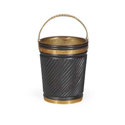 with spiral carved sides and a brass bale handle