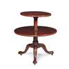 with two graduated circular tiers, raised and separated by turned and tapered columns, on cabriole legs ending in pad feet with brass castors