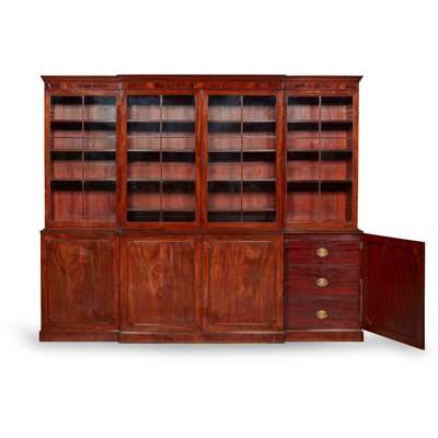 GEORGE III MAHOGANY BREAKFRONT BOOKCASE