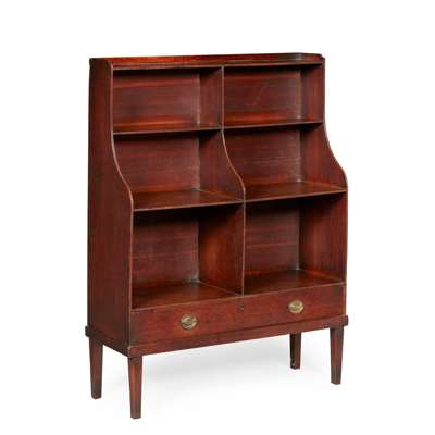 LATE GEORGE III OAK WATERFALL BOOKCASE