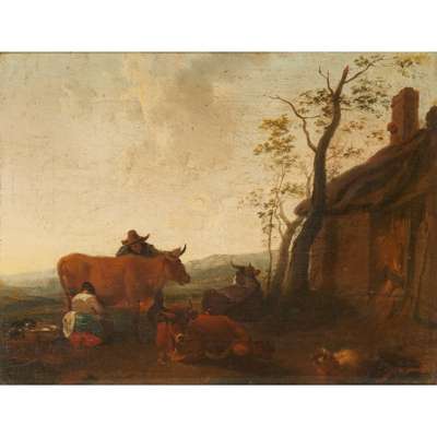 AN ITALIANATE LANDSCAPE WITH MILKMAID