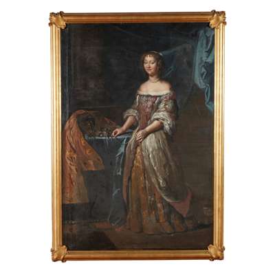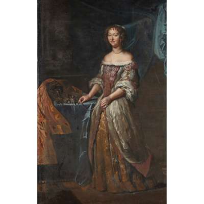 FULL LENGTH PORTRAIT OF A LADY BESIDE A CASKET OF JEWELS