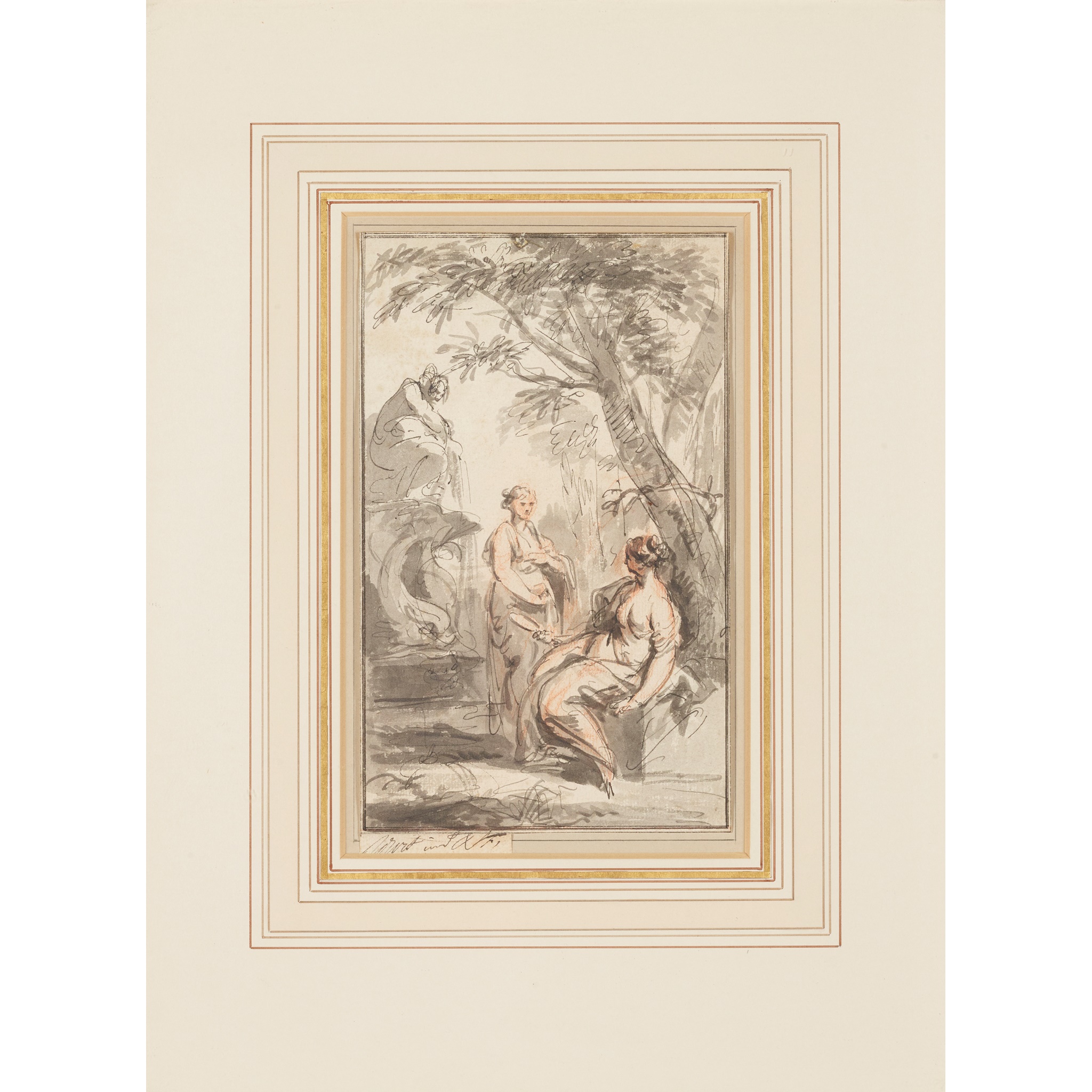Pen and ink, grisaille and sanguine chalk, indistinctly inscribed