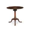 the piecrust top carved with pierced shells to the border, on a birdcage and tapered column on leaf carved cabriole legs ending in pad feet