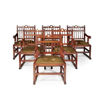 SET OF SIX WALNUT 'DRUNKARD'S' CHAIRS