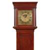 the moulded cornice above a brass dial with Roman number chapter, signed Wm Porthouse PENRITH, with a date aperture, above a plain trunk and case on a plinth base, the thirty hour movement striking a bell