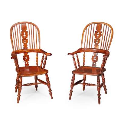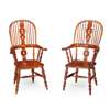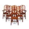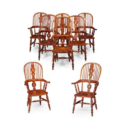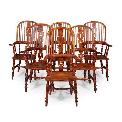 SET OF EIGHT YEW WOOD WINDSOR ARMCHAIRS