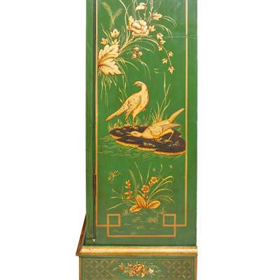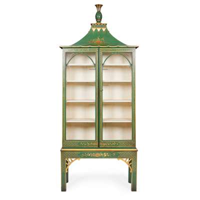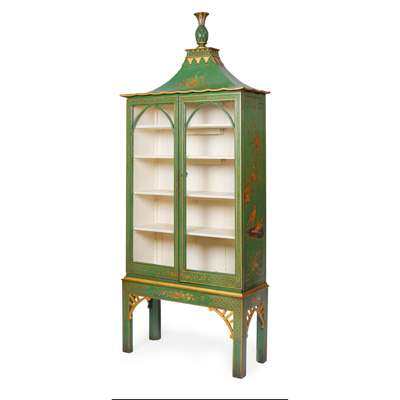 REGENCY STYLE GREEN PAINTED, PARCEL-GILT CHINOISERIE DISPLAY CABINET