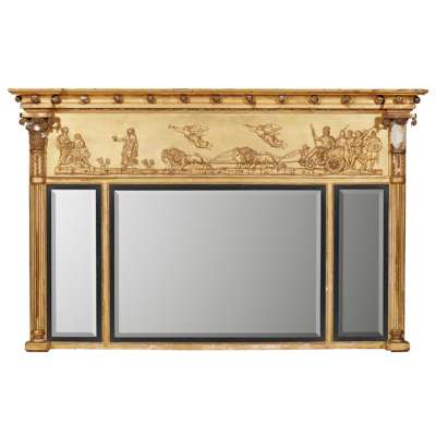 REGENCY GILTWOOD AND GESSO 'APOLLO' TRIPTYCH OVERMANTEL MIRROR