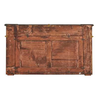the rectangular bevelled plate enclosed by Ionic pilasters and lotus clasped moulding surmounted by lion mask motifs