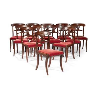 SET OF TWELVE REGENCY STYLE MAHOGANY DINING CHAIRS