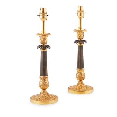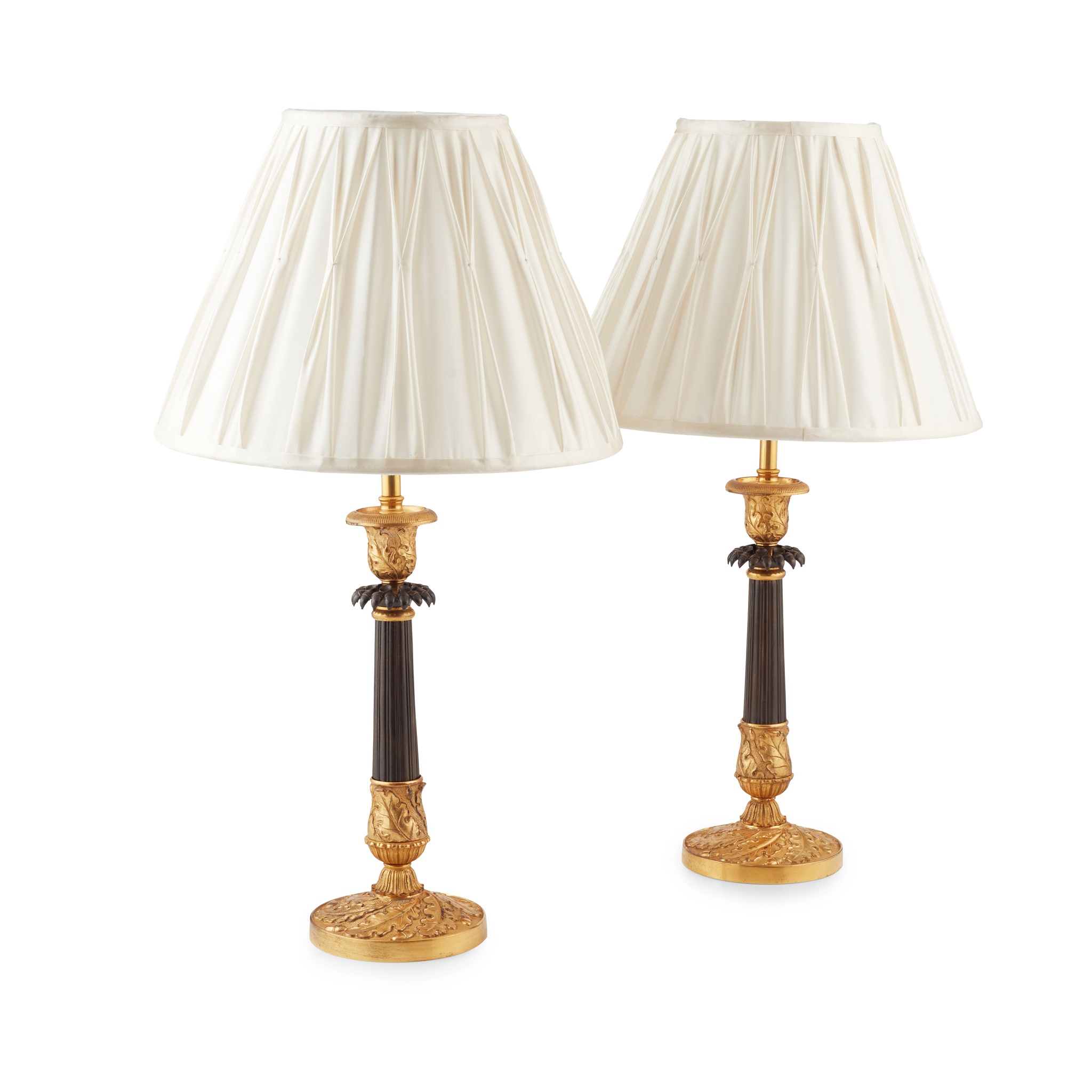 PAIR OF REGENCY GILT AND PATINATED METAL LAMPS