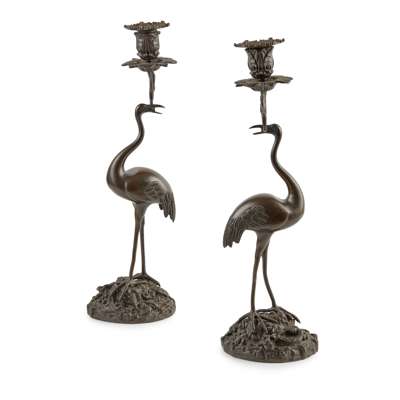 the stems modelled as storks standing on naturalistic domed bases cast with shells