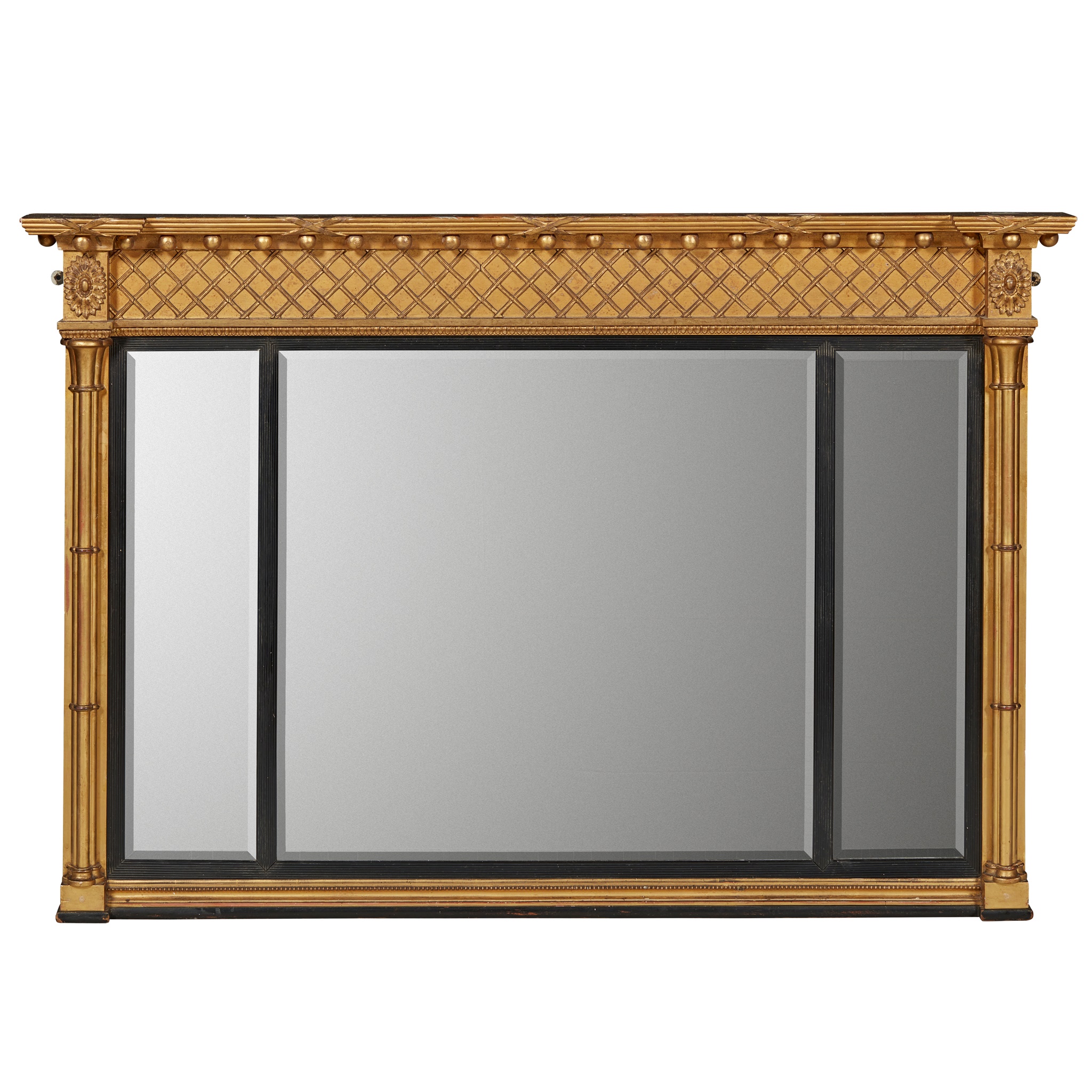 REGENCY GILTWOOD AND GESSO TRIPTYCH OVERMANTEL MIRROR