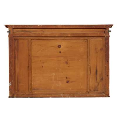 the lattice moulded frieze above bevelled mirror plates in reeded ebonised slips and flanked by cluster columns