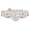 comprising twelve dinner plates, 26.8cm diam; twelve breakfast plates, 24.2cm diam.; ten side plates, 21cm diam.; eleven shallow bowls, 27cm diam.; twelve smaller shallow bowls, 24.3cm diam.; two rectangular serving plates with canted corners, 27.5cm, 32cm; a large hexagonal form tureen and cover; a low hexagonal tureen, cover and stand; a low hexagonal tureen base; underglaze blue Masons Ironstone China marks, impressed letters and numerals