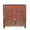 the top with outset corners and a reeded edge, above five graduated drawers flanked by reeded corner columns, on turned reeded bun feet