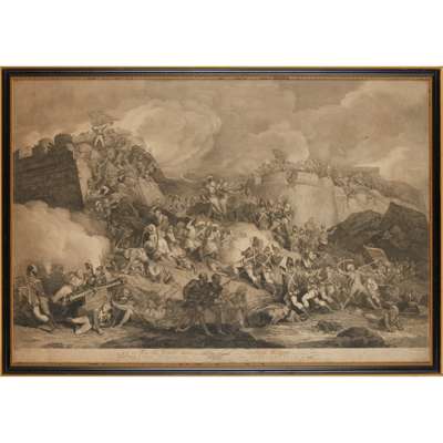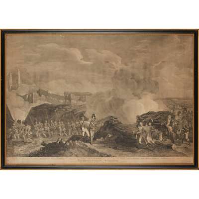 to include The Glorious Conquest of Seringapatam, The Storming of Seringapatam, The Last Effort of Tippoo Sultaun in defence of the Fortress of Seringapatam; together with a print 'Descriptive Sketch of the Three Prints of the STORMING OF SERINGAPATAM, 43cm x 58cm, framed