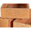 the top with a leather insert and brass dish reserves, above a long and two short frieze drawers, raised on banks of three drawers, inscribed on the back of the drawers "2nd Supt ENG./ E8 'E' Dk/ STAR"