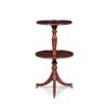 with two dished circular tiers with reeded edges, raised and divided by reeded baluster columns on outswept reeded legs ending in brass caps and castors