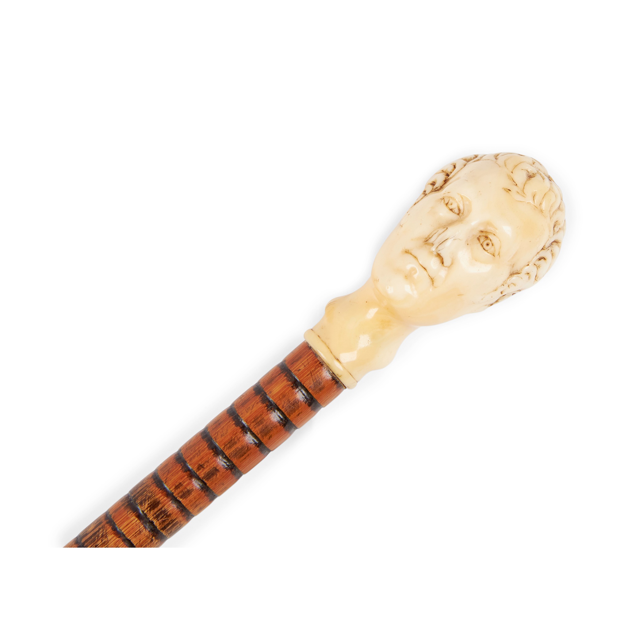 IVORY AND HICKORY SHAFTED WALKING STICK, OF DUKE OF WELLINGTON INTEREST Y