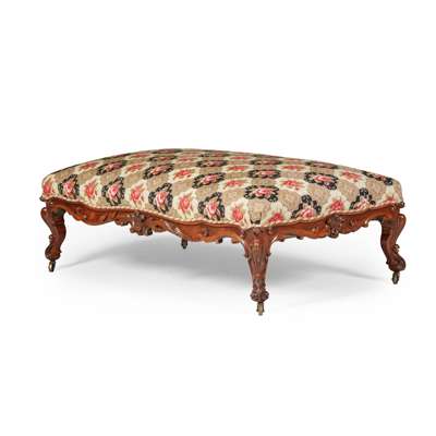 VICTORIAN ROSEWOOD AND NEEDLEWORK LARGE FOOTSTOOL Y