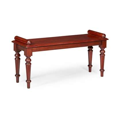 the long seat with a moulded edge and turned cylinder ends, raised on turned and tapered legs