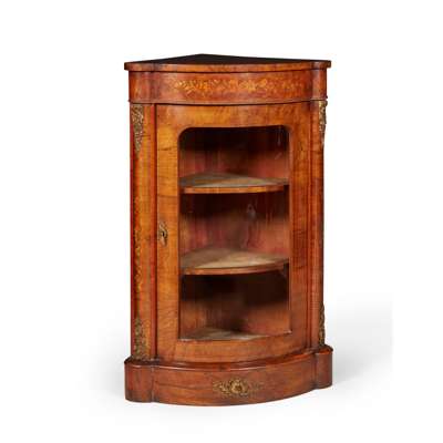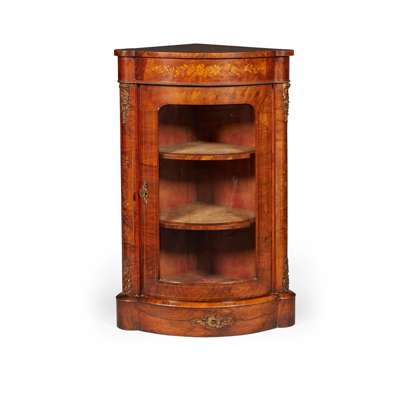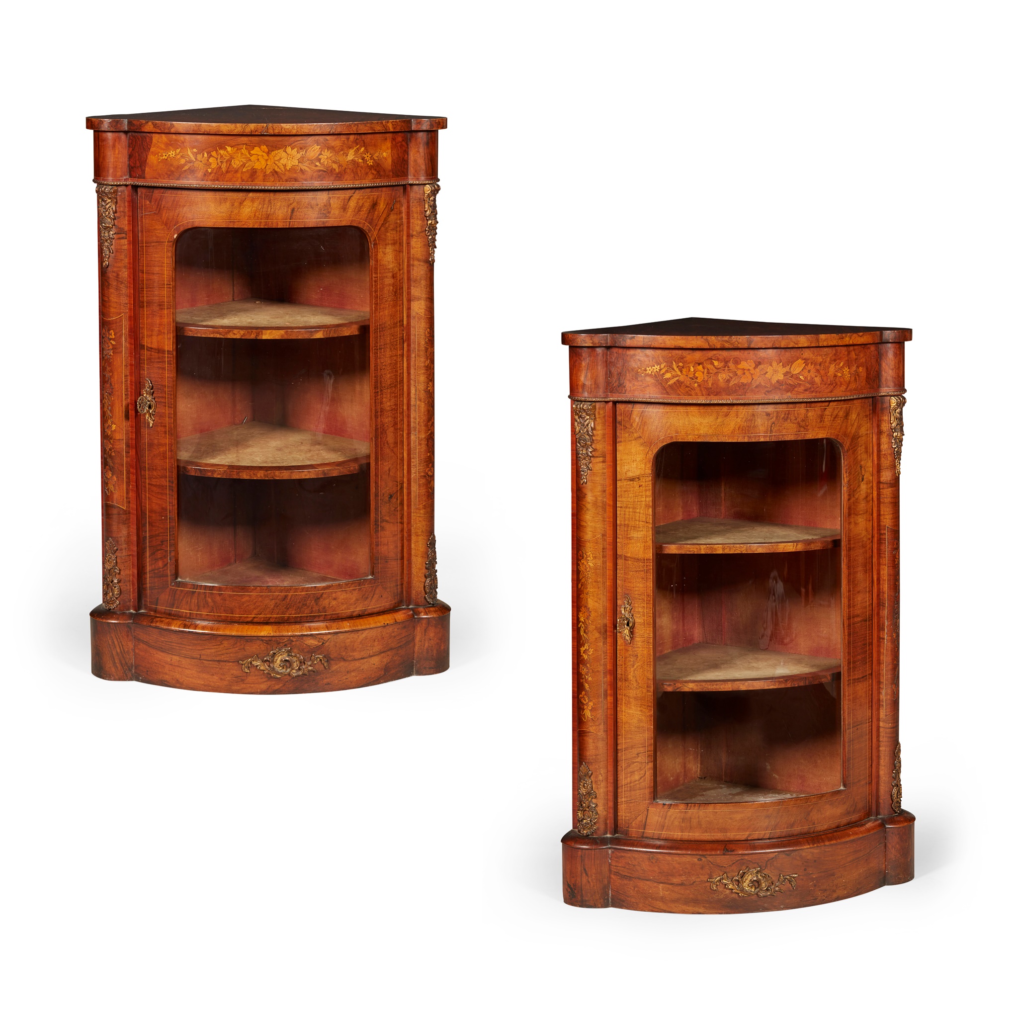 PAIR OF VICTORIAN WALNUT AND MARQUETRY CORNER CABINETS
