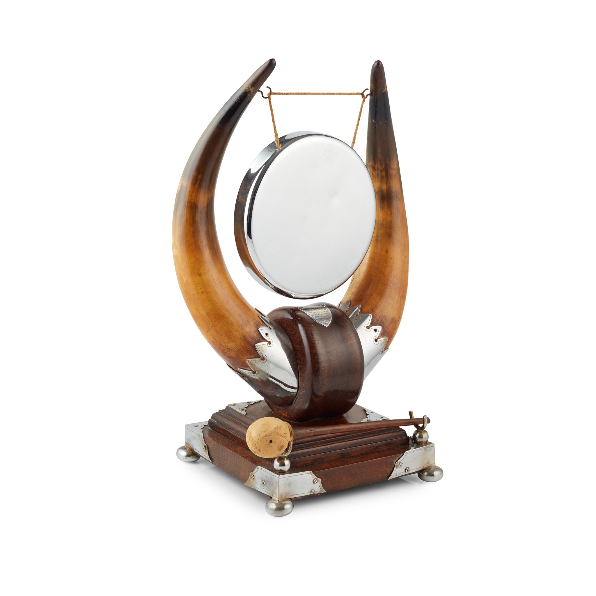 SCOTTISH LATE VICTORIAN SILVER PLATED, HORN, AND OAK TABLE GONG