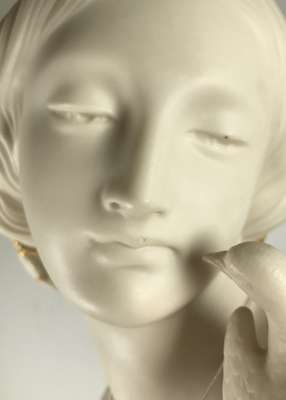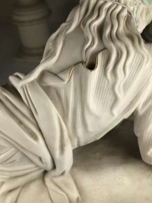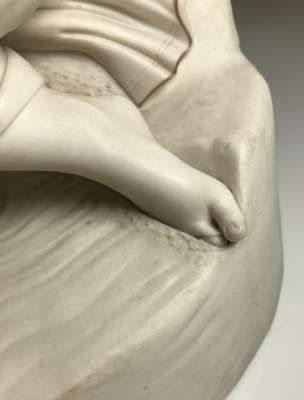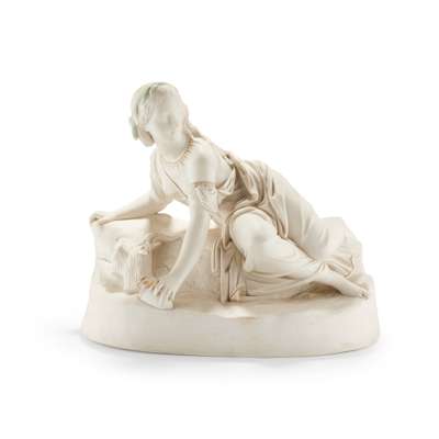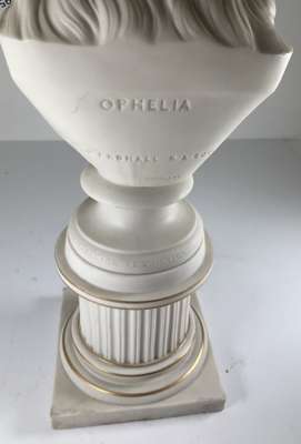 depicting Ophelia, Oenone, and Lesbia, after W. C. Marshall, with impressed 'Copeland' marks and 'Crystal Palace Art Union'; together with a PARIANWARE FIGURE OF A WATER COLLECTOR, after William Boynton Kerr, impressed 'Kerr London 1857', 35cm long